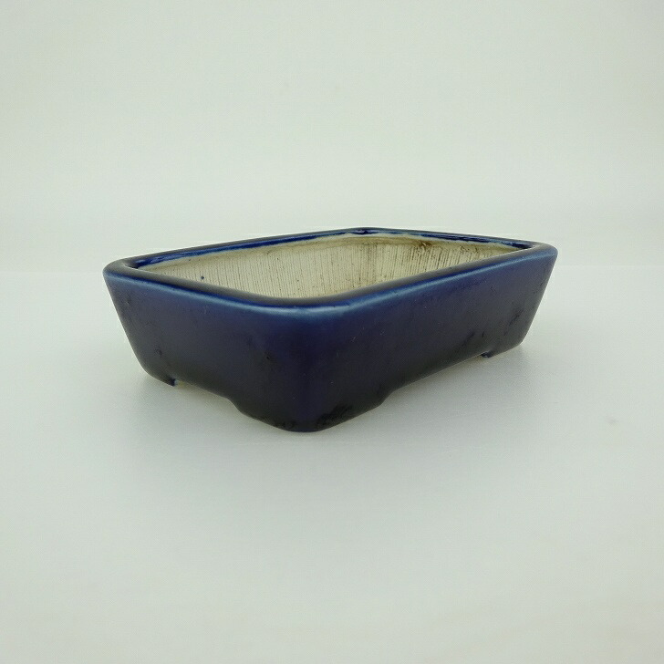 【中古】 盆栽鉢 青香 小鉢 長辺 約 9.3cm 長方鉢 釉薬 現品 中古鉢 收藏
