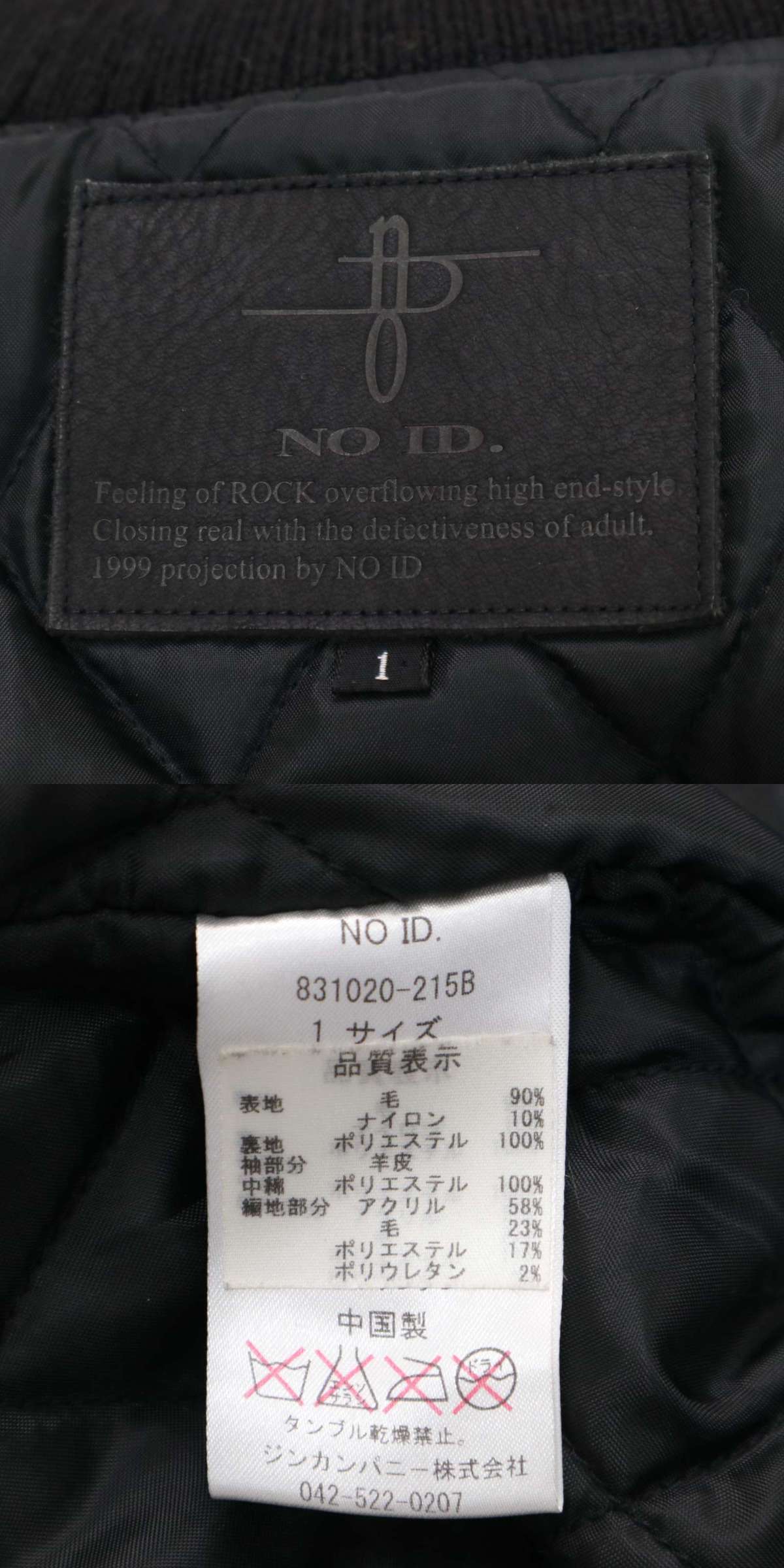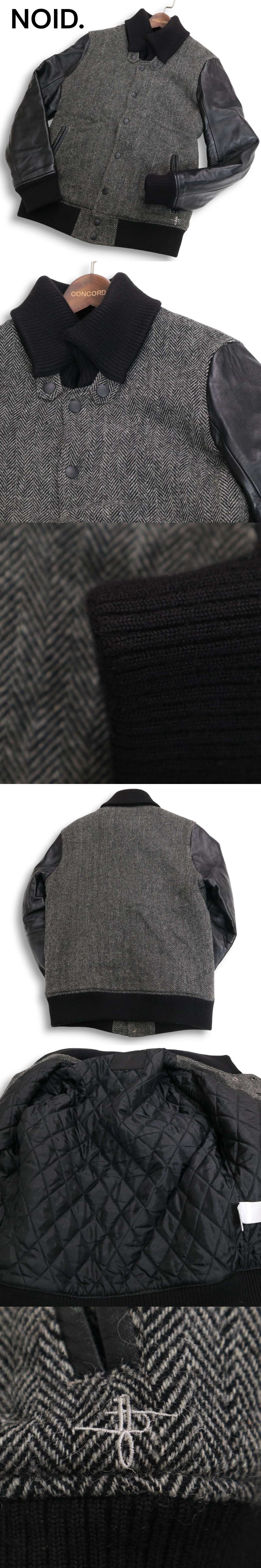 NOID. ノーアイディー 秋冬 袖革★ シープスキン レザー × ウール ツイード ドンキー スタジャン ジャケット Sz.1 メンズ 收藏