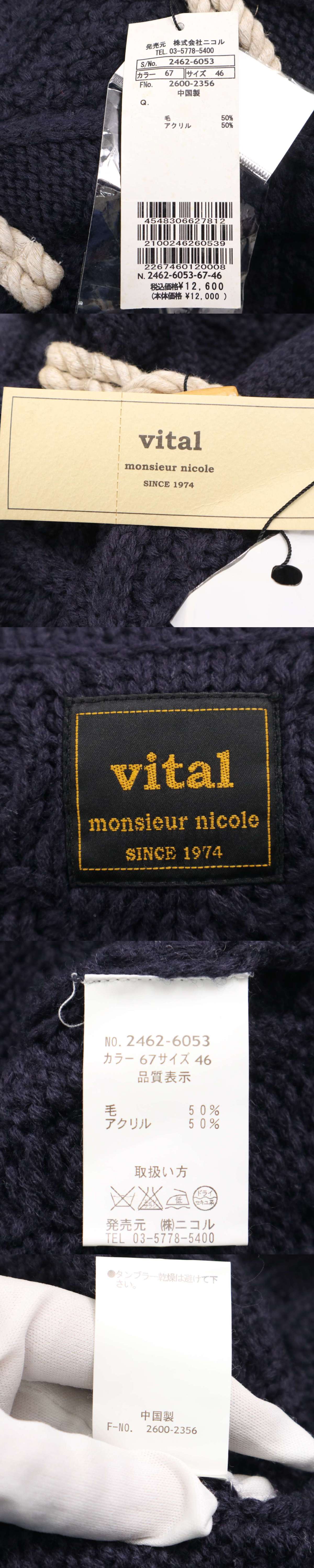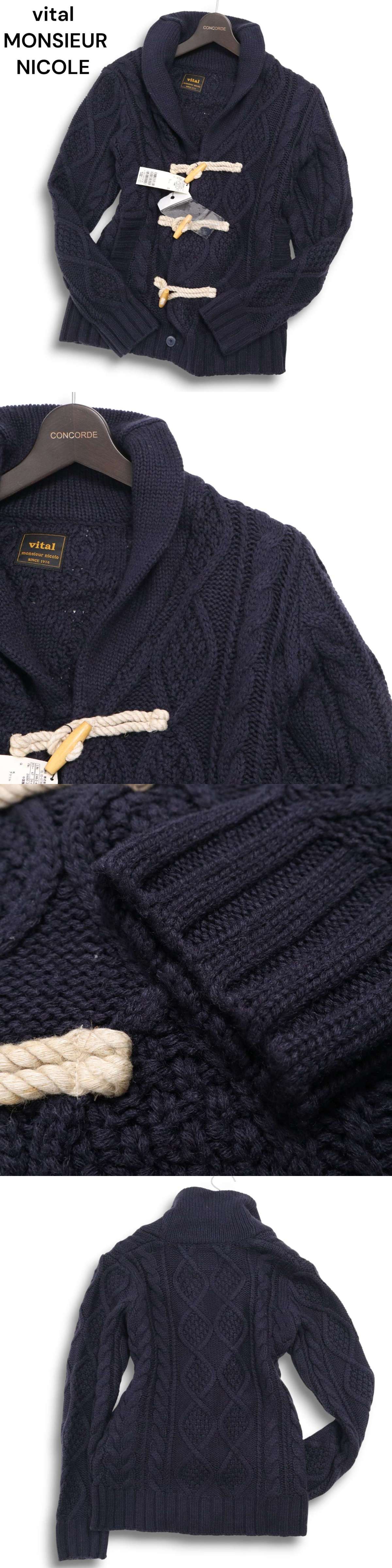 新品 未使用★ vital MONSIEUR NICOLE ムッシュ ニコル ウール ケーブル編み ダッフル ニット カーディガン Sz.46 メンズ 紺 收藏