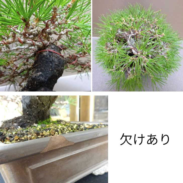 | 注意事項 | 鉢のフチに欠けあり 幹にキズあり ※商品到着後、直ぐにお水をあげてください。 ※当店は定期的に害虫対策として消毒、殺菌をおこなっております ※有機肥料を主に使用しておりますので発送後、まれに虫がつく場合がございます。 ※モニターの発色具合によって、実際のものと色が異なる場合がございます。 ※商品は鉢入りの盆栽のみになります。(卓、作業台、小物等は撮影用です。) ※あらかじめご了承くださいますようお願いいたします。 |