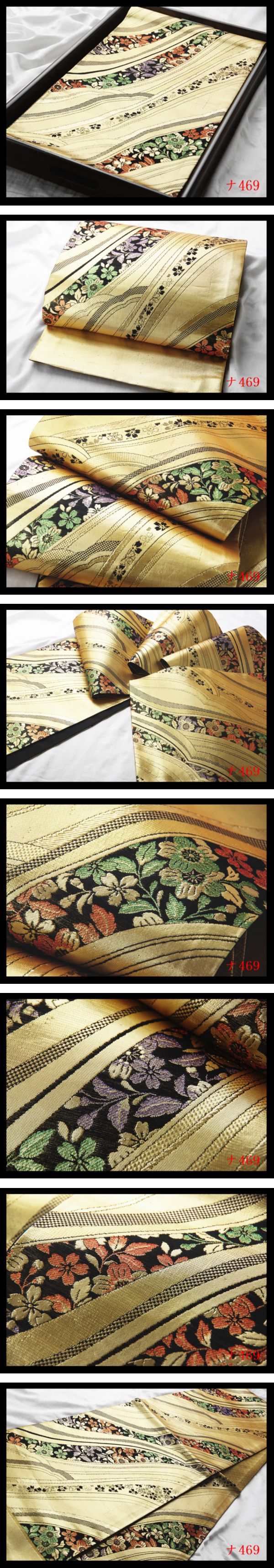 【ナ469】西陣逸品 振袖可 枝垂れ桜紋 金色地 気品豊かに 正絹純金糸六通高級美術袋帯 新品同様 検★着物名古屋帯和装小物帯締め 收藏