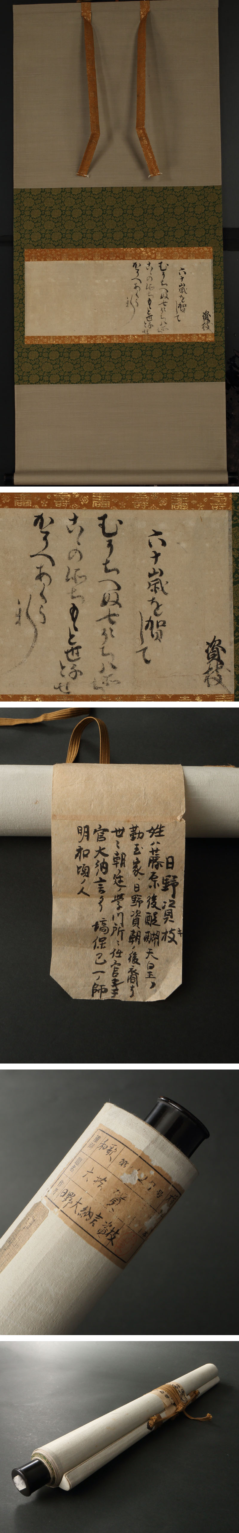 【深和】日野資枝 和歌詠草軸装「六十歳を賀して」真筆(公家 公卿 書家 堂上歌人 国文学 掛軸 書幅 京都) 收藏