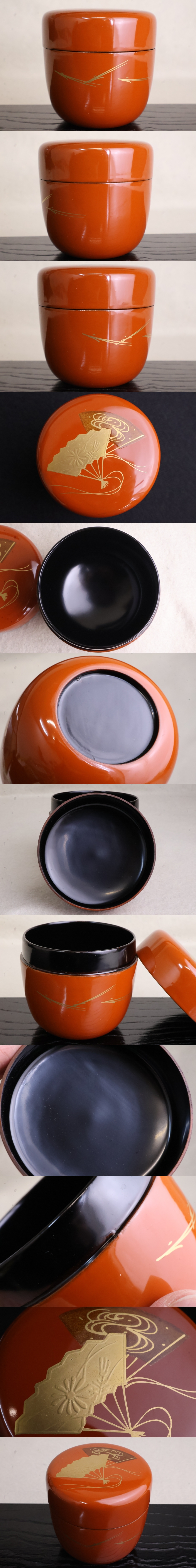 TB526金蒔絵 中棗 高さ約6.7cm◇扇面/松葉/若松/漆塗/茶器/茶道具/薄茶/濃茶/漆器/漆芸/漆工芸/時代/骨董/古美術/古道具タグボート 收藏