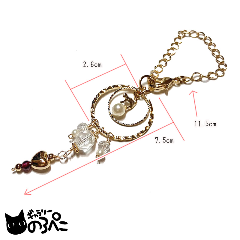 玉乗りネコとハートのバッグチャーム(ガーネットを添えたハートビーズと水晶と玉乗り猫が揺れるバッグチャーム) aa458-822 收藏
