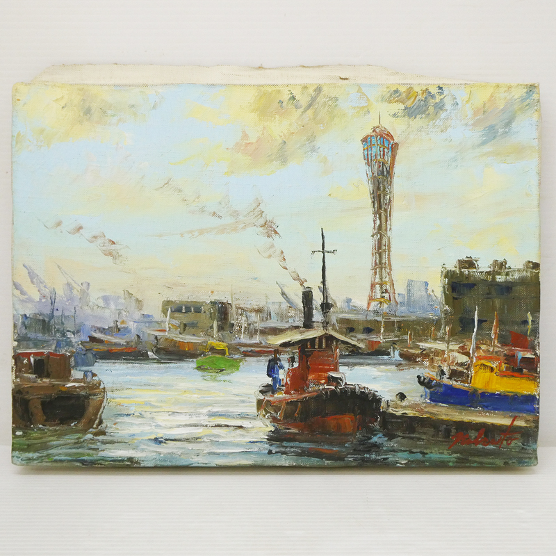 M89) 神戸港 肉筆 絵画 作者不詳 油彩 風景画 F4号 在銘 額装入り! 実力画家 神戸風景 船 海景 ポートタワー 神戸に縁のある方にオススメ♯ 收藏