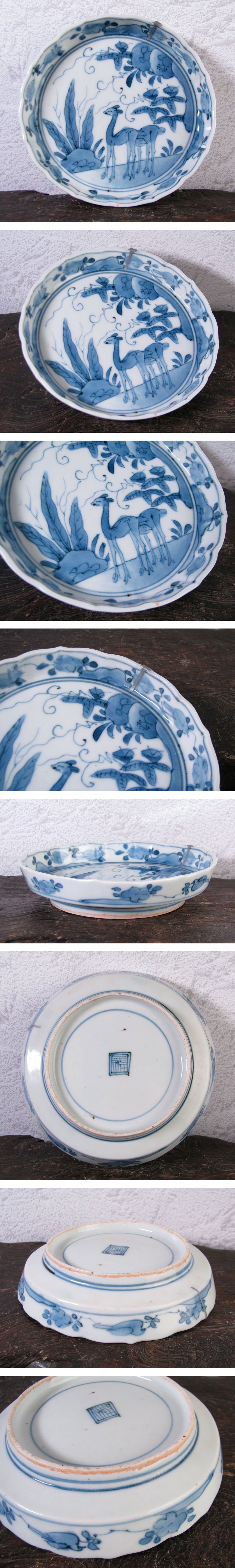 古伊万里 藍柿右衛門 鹿文小皿No4 角福銘 幅:14cm 江戸中期/26a066 收藏