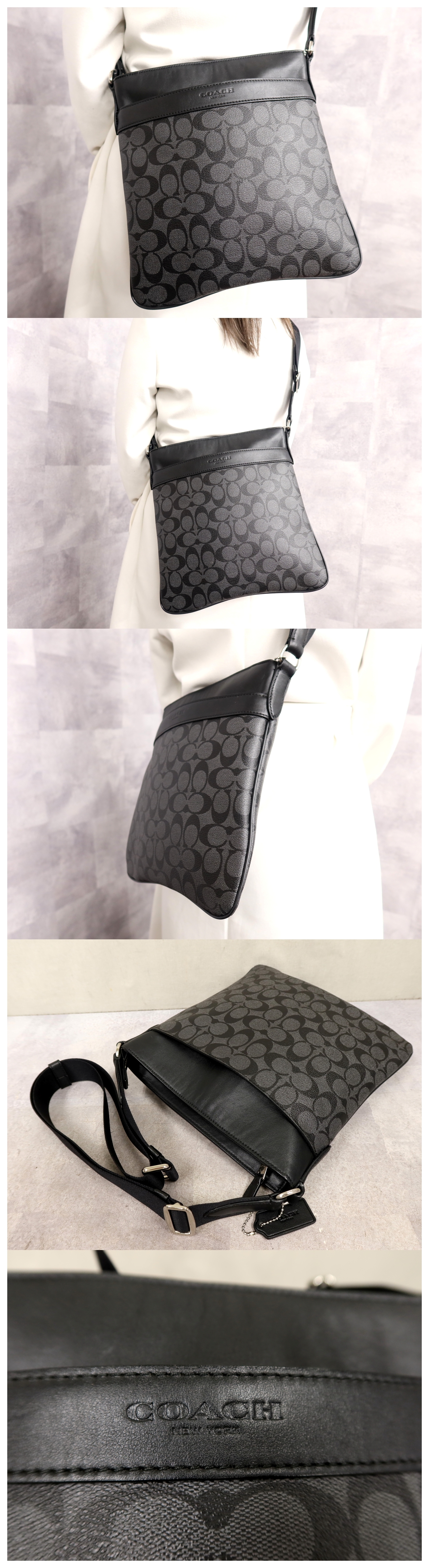 ●超美品●COACH コーチ●メンズ●シグネチャー●ロゴ型押し●F71877●PVC カーフ レザー●ショルダー バッグ●黒 グレー●SV金具●Js64855 收藏