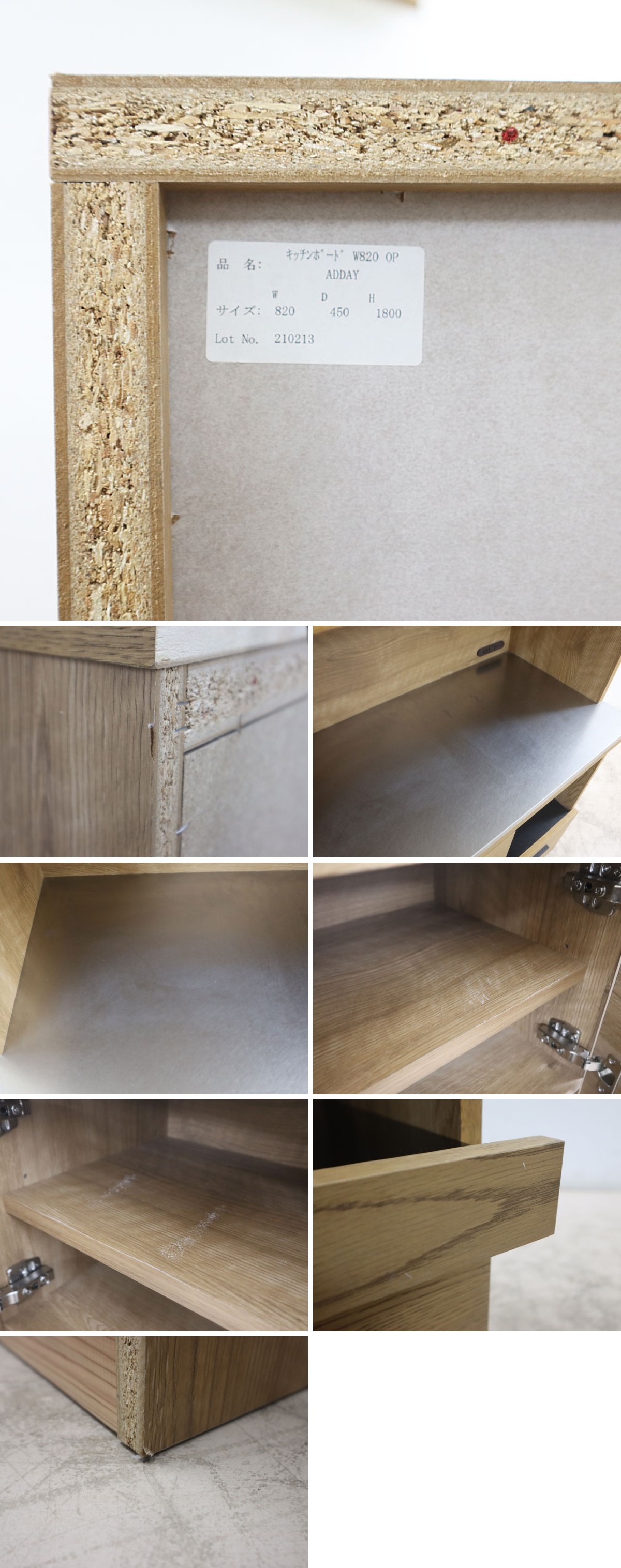 【仕様】 全体サイズ:約 W820×D465(取手含)×H1800mm 個別サイズ:上段/約 W820×D450×H968mm 、下段/約 W820×D465×H833mm 材質:前面/オーク突板、側面/プリント紙化粧繊維板、天板/ステンレス、取手/アルミ 仕様:可動棚板/上部1枚・開口部1枚、スライド棚/1ヵ所、コンセント/上部2口・下部2口 参考価格:151,250 円 ※上下段に分解しての搬入が可能です。 |