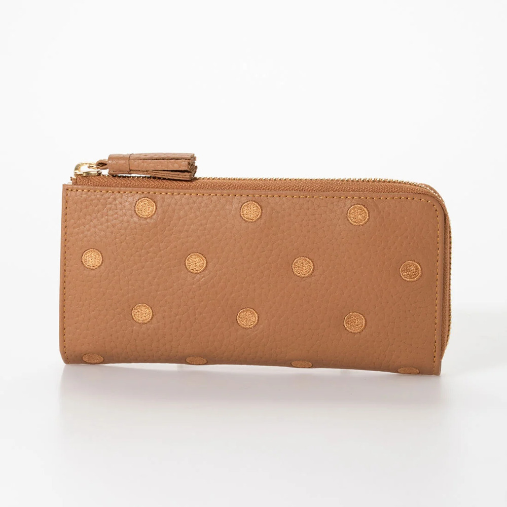 ☆ キャメル ☆ perche ペルケ 牛革ドット刺繍 L字パームフィット ペルケ 財布 perche 08-06-02978 長財布 L字ファスナー 長サイフ 薄型 收藏