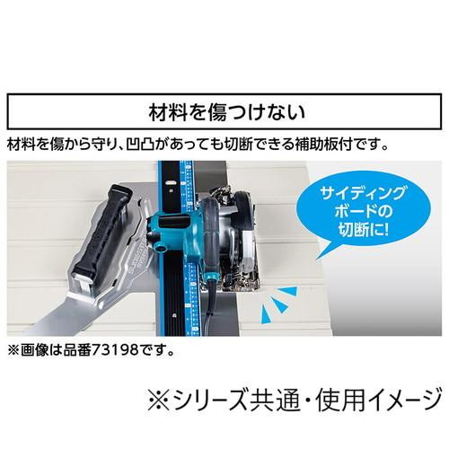 | スライド・ストップシステムを採用しました。通常はスベリ止ゴムが浮いている為、スムーズにスライドできます。取手を押さえると、スベリ止ゴム部分が下がって材料に密着し、ガッチリ固定できます。材料に当てて電気丸ノコを沿わせるだけで、直角に切断できます。メートルと尺相当の併用目盛です。軽さと頑丈さを両立したアルミ製の青地白目盛のガイドです。 |