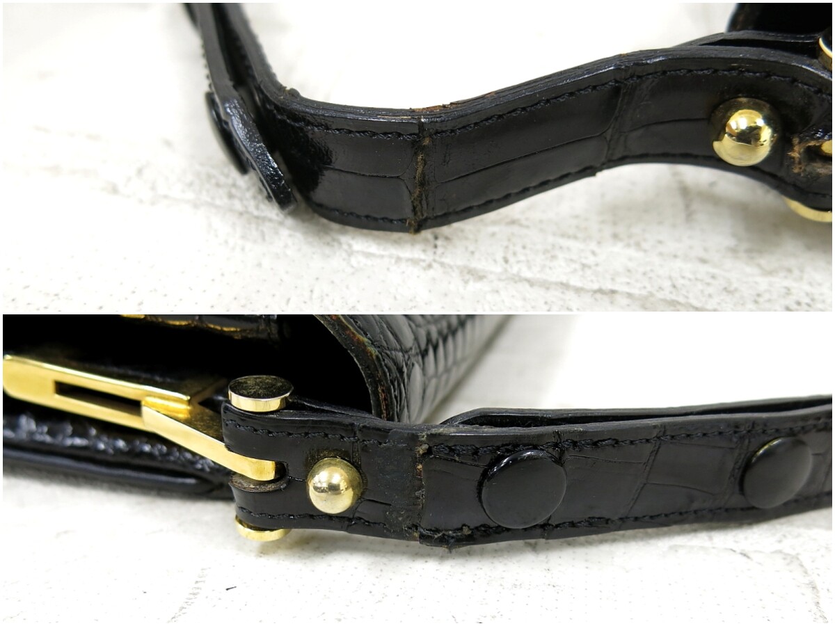 ◆美品◆MORABITO モラビト◆シャイニング クロコダイル 本 ワニ 革◆ワン ショルダー バッグ◆ブラック G金具◆ヴィンテージ◆A10942 收藏