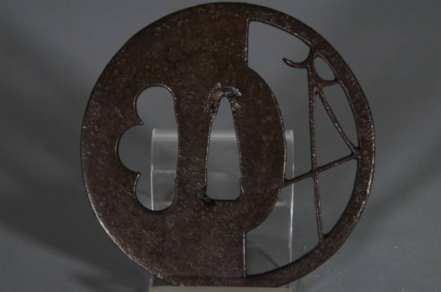 鉄地に「松」と「松葉」を透かした透かし鐔です。