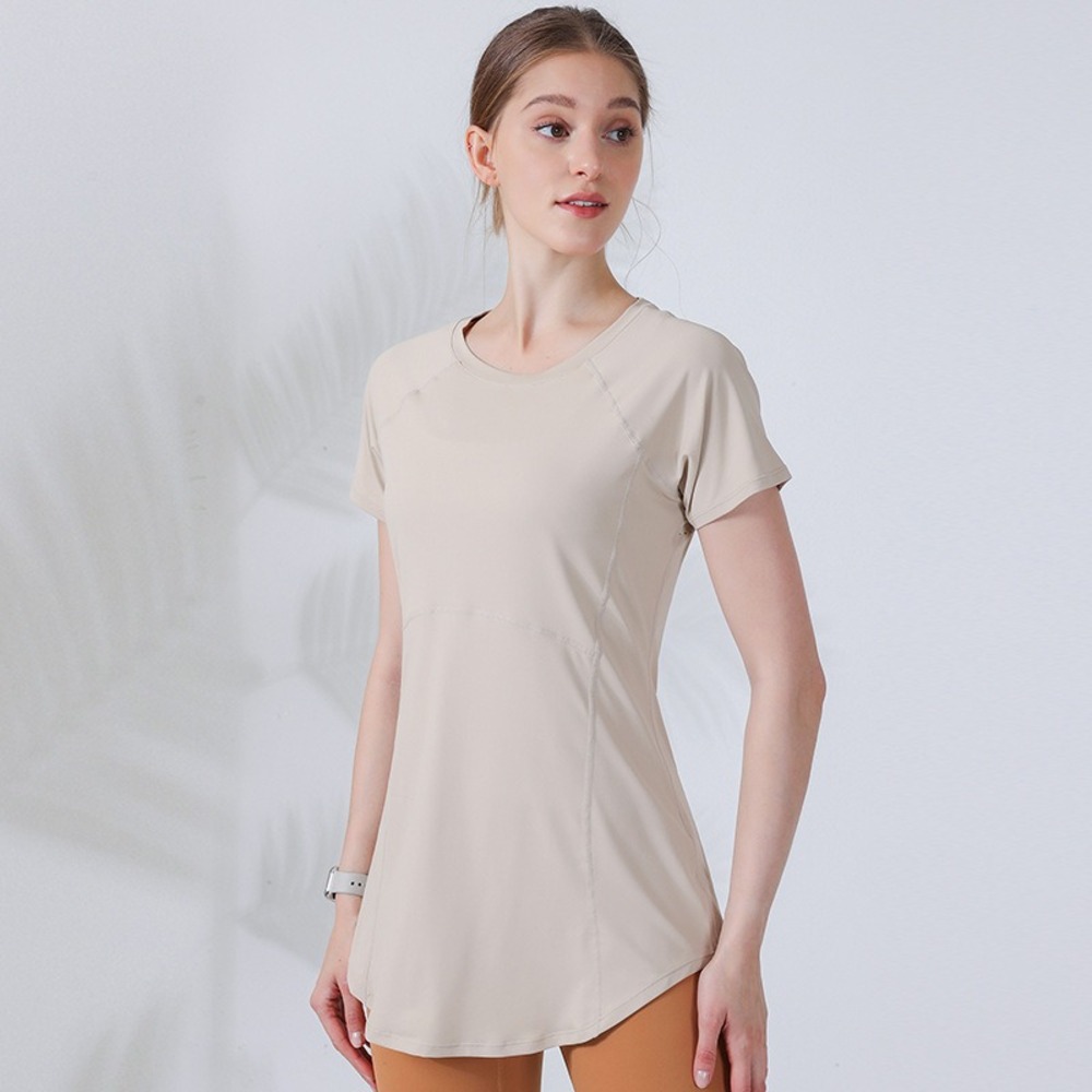 ☆ ベージュ ☆ Mサイズ ☆ ヨガウェア Tシャツ 通気性 ヨガウェア Tシャツ トップス tシャツ レディースTシャツ 半袖 ロング丈 收藏