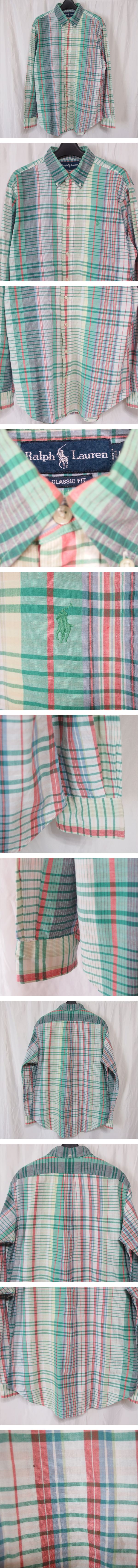 Polo Ralph Lauren◆ラルフローレン メンズ 長袖 ボタンダウン チェック柄 シャツ(グリーン系)サイズL◆USED M 收藏