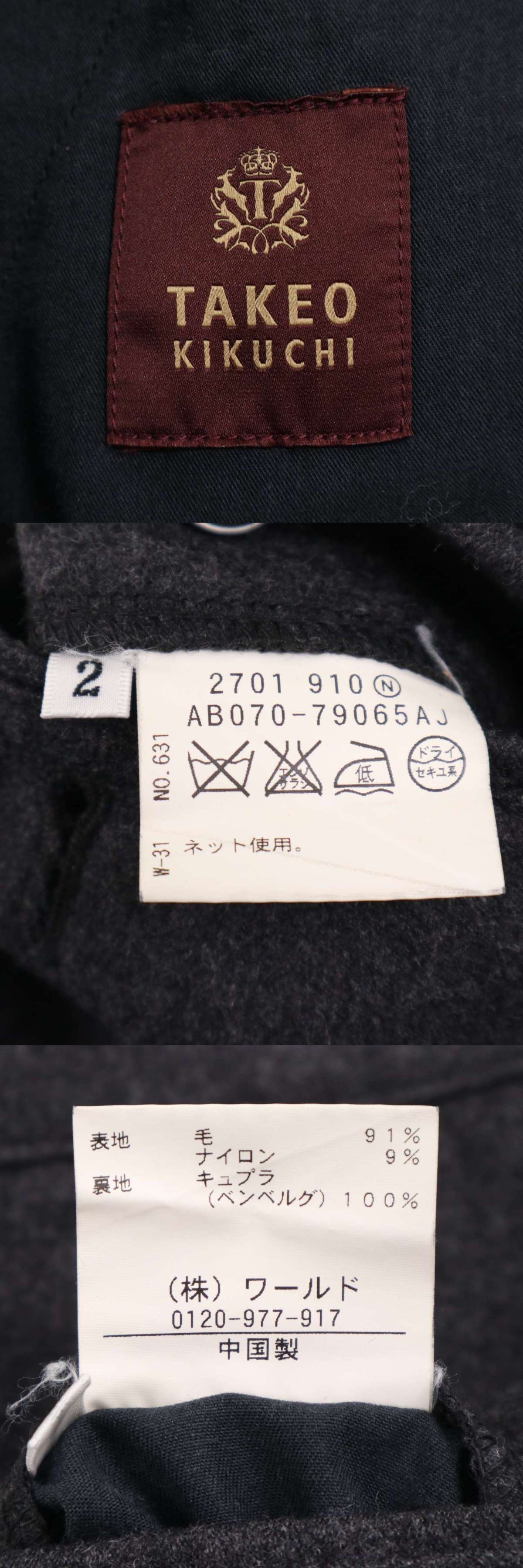 TAKEO KIKUCHI タケオキクチ 秋冬 ウール★ カーゴ テーパード パンツ Sz.2 メンズ 灰 グレー 收藏