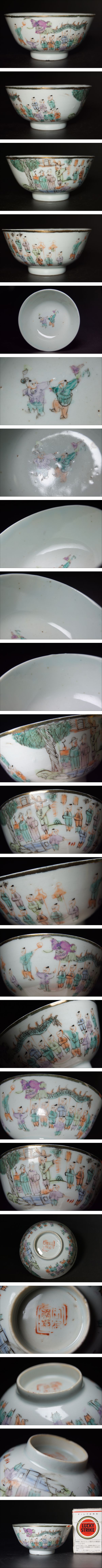 中国美術 同治年製 粉彩 龍舞 唐子 人物画 茶碗 色絵 金彩 中国古玩 唐物 茶道具 茶器 | |||||||||