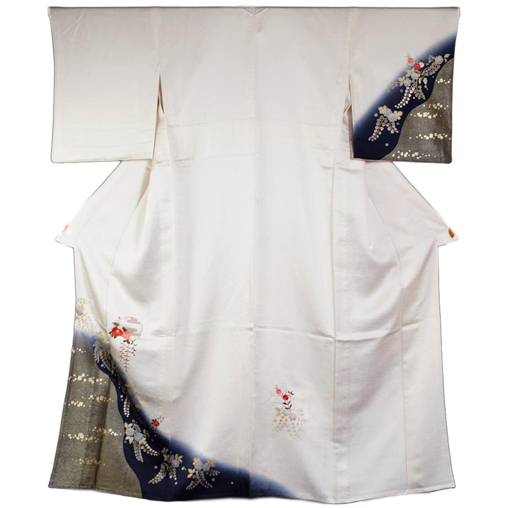 単衣 着物 訪問着 ますいわ屋扱い ぼかしに辻が花 刺繍 金彩 Mサイズ 正絹 乳白色系 付下げ訪問着 中古 フォーマル 付下げ リサイクル着物 收藏