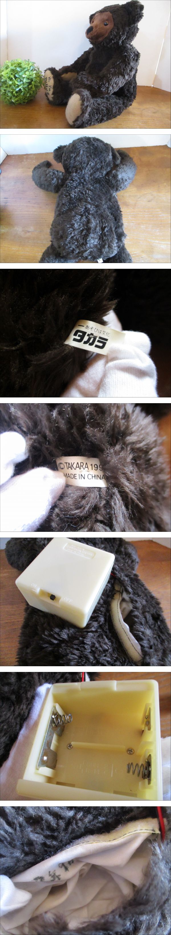 | ご覧いただき、ありがとうございます。 【昭和レトロ・激レア・希少】 TAKARA グーグービリー Billy ぬいぐるみ 約45cm テディベア 1993年 タカラ くま クマ 人形の出品になります。 可愛いグーグービリーのぬいぐるみになります。 寝かすと目を閉じるます。 胴体に機械が内蔵されていますが、単2形電池を交換したところ、スイッチONでクウクウ、ゴーなど、いびきのような音が作動する時と、何も作動しない時がございます。 商品到着時にも作動しない可能性が大きくございます。 現状でのお渡しとなりますので、ご納得のうえでのご購入をよろしくお願い致します。 あまり見かけない貴重なお品だと思います。 コレクターの方、この機会にぜひ☆ 【サイズ】 身長 約45cm 横幅 約35cm 奥行き 約14cm (おおよそのサイズです。素人採寸ですので、多少の誤差はお許しください。) 【状態】 使用品です。 自宅での長期保管品になります。 胴体の機械内蔵部分には記名箇所や汚れがございます。(画像参照) ぬいぐるみ本体に、小傷、変色、汚れがございますが、全体的に大きく目立つようなダメージもなく良い状態の方だと思います。 全て現状でのお渡しとなりますので、ご納得のうえでのご購入をよろしくお願い致します。 古いものになりますので、細かな点が気になる方はご入札をお控えくださいませ。 USED品にご理解ある方のご入札をお待ちしております。 専用の箱はございません。 簡易包装、ゆうパック100サイズでの発送とさせていただきます。 詳細は写真をご覧の上ご判断ください。 画像に写るグリーンの球体(直径11cm)は商品には含まれません。 最終日のご質問には回答が間に合わない場合もございます。ご理解くださいませ。 | |||
