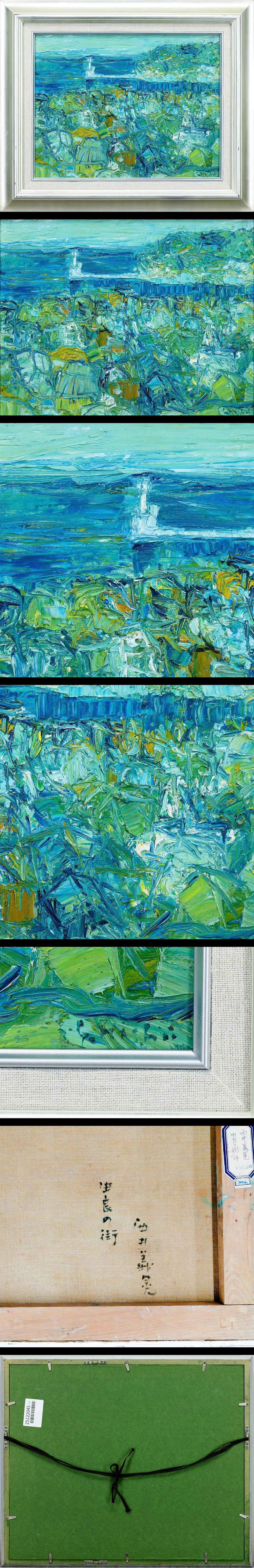 【真作】【WISH】西井義晃「由良の街」油彩 6号 ◆海と緑が広がる穏やかな海辺の町 〇自由美術会員 堅牢なマチエール #25122045 收藏