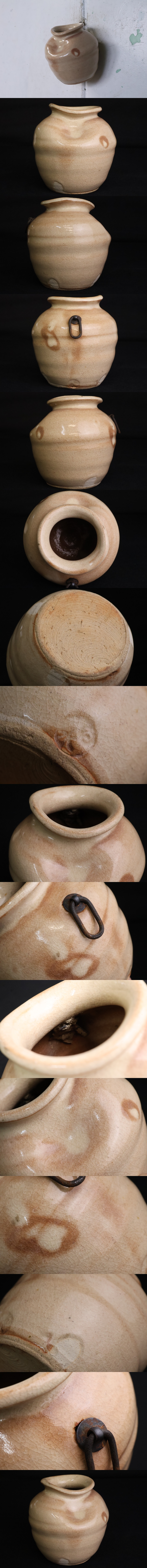 TB526萩焼 掛花入◇陶印有/花器/花生/花瓶/床飾/茶花/野の花/投げ入/煎茶道具/陶器/焼物/伝統工芸/時代/骨董/古美術/古道具タグボート 收藏