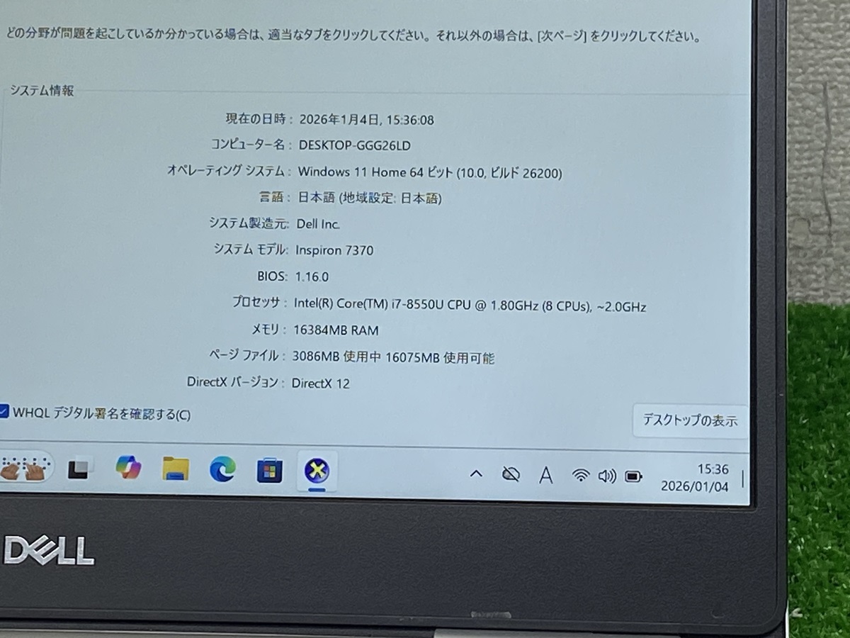 dell inspiron 7370 ノートPC Core i7 第8世代 i7-8550U デール ノートパソコン中古 メモリ16GB SSD256GB カメラ 13.3 フルHD LAPTOP