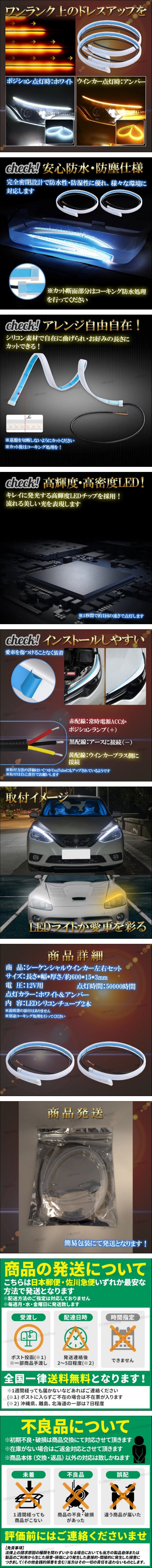 | シーケンシャルウインカー 流れるウインカー LED テープライト シリコンチューブ 極薄 12V ホワイト アンバー 汎用 60cm 白 黄色 2本 ② | ||