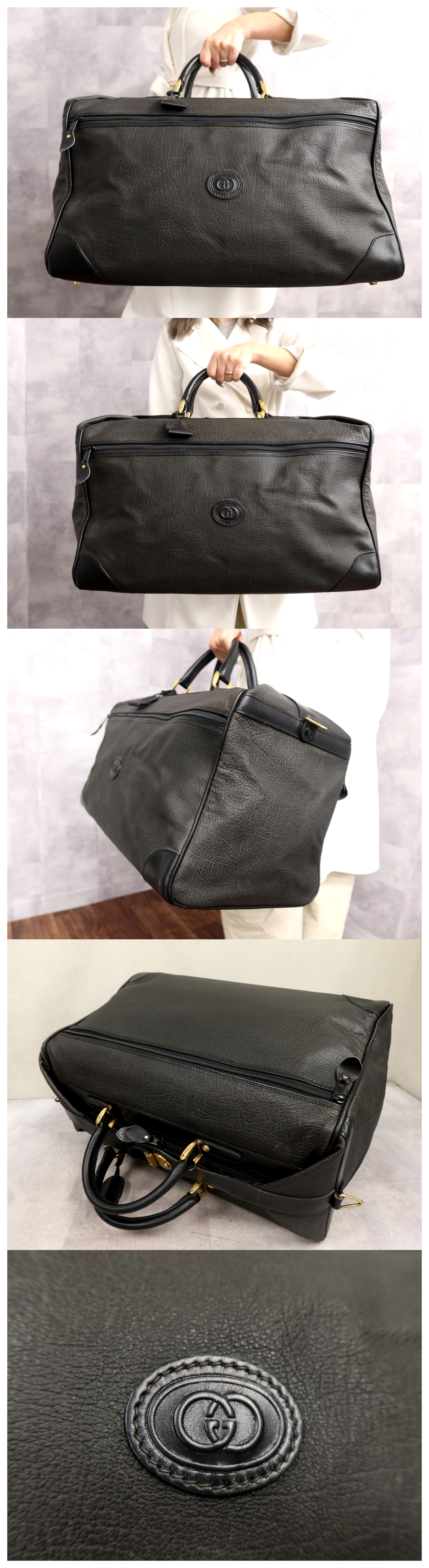 ●超美品●GUCCI オールド グッチ●ロゴ型押し●カーフ レザー 本革●ボストン バッグ●黒●G金具●イタリア製●ヴィンテージ●Js64835 收藏