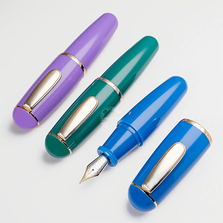 | 【MAJOHN/未匠】 Q1 アクリルミニ万年筆 超極太 アイドロップ式 大容量 PINE BLOSSOM GREEN (グリーン) ペン先:F(細字)での出品です 海外SNSで話題の万年筆が再入荷しました! ![]() *セット販売ではございません *PINE BLOSSOM GREEN (グリーン)1本での出品です* ※中国以外での「MOONMAN」のブランド名が「MAJOHN」へと変更になります。 品質などに変わりはございませんので、安心してお買い求めいただければと思います。 なんとも特徴的などっしりとした極太軸、どこか懐かしさを感じさせるカラーリングの、 「MAJOHN Q1 極太軸万年筆」をご紹介いたします。 スティピュラのパッサポルトなど ミ二サイズの万年筆は多々あれど、太さを兼ね備えた軸は比較的珍しいのではないでしょうか。 ![]() なんといってもこのずんぐりむっくりとしたデザイン‥。 1980年代に製造されたP社やS社の今は無きアイテムをぼんやりと思いだしませんか? 温故知新というか‥なんというか、中国の万年筆はそういった部分でも面白さを感じます。 ![]() 実際使って見ると… 単なる見た目のインパクトだけを求めたモデルでないことが お分かりいただけるかと思います。 実用的かと聞かれますと‥何とも言い難い部分はございますが、 一応、キャップ部が不安定ながらも尻軸に刺さりますので筆記時の長さはちょうど よく、問題は太さ‥なんですが、しばらく持っていると手になじんできた気がします。 個人差はあると思いますが、この形状なかなか悪くないなぁと思いました。 ![]() こちらは大容量のインクをボディーに直接入れて楽しむアイドロップ式です。 専用のギフトBOXにはガラススポイト1本が付属しています。 「アイドロップ式」 最も古くから用いられています。インクの入ったボトルインクから、 付属のスポイドで万年筆ボディへ直接入れて使う方法です。 カートリッジ式に比べて、インクの量も多く、ペン先の毛細管現象が働きやすいので インクフローがとてもスムーズです! ![]() *PINE BLOSSOM GREEN (グリーン)1本での出品です* ペン先には、硬めでしっかりとした書き味が楽しめるスチールニブを採用。 筆圧の強い方や、初めて万年筆をお使いになる方でも安心してご利用いただけます。 今回の出品ペン先はF(細字)となります。 鉄ニブといったらカリカリしていて書き心地が…と思われる方もいらっしゃるかもしれませんが。 実際に字を書いてみると快適なインクフローと適度な重量感で、 絶妙な筆記を体感することが出来ます。 *********************************************************************** ≪商品詳細≫ 【MAJOHN】Q1 超極太 ミニ 万年筆 PINE BLOSSOM GREEN (グリーン) ペン先 : ステンレス サイズ : F(細字)※入荷時期によって、ペン先のデザインが若干異なる場合がございます。 機構 : アイドロップ式 材質 : 金属+アクリル 長さ : 約113mm 太さ : 約20.5mm/23mm(キャップ部) 重さ : 36g 付属品 : 純正ケース・ガラススポイド 新品未使用 * お使いのモニター、撮影条件などの理由で実際の商品と若干色合いが異なる場合が ございます。予めご了承ください。 こちらは入荷時よりクリップにほんの僅かなスレキズがございます。 デザインを損なうものではございませんが、予めご了承ください。 当店では許容範囲としてこちらに明記の上、出品させていただきます。 また天然木の商品ですので木目の出方にも個体差がございます。 こちらも予めご了承ください。 入荷時期によって、ペン先のデザインが若干異なる場合がございます。 *********************************************************************** |