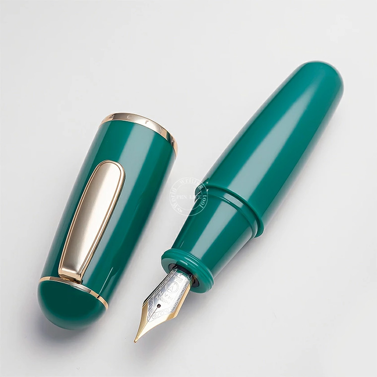 ■◆万年筆【MAJOHN/末匠】Q1 極太軸万年筆 ミニサイズ PINE BLOSSOM GREEN 緑 F 細字 アイドロップ吸入式 デモ 大容量 新品 /MO44GR-F 收藏