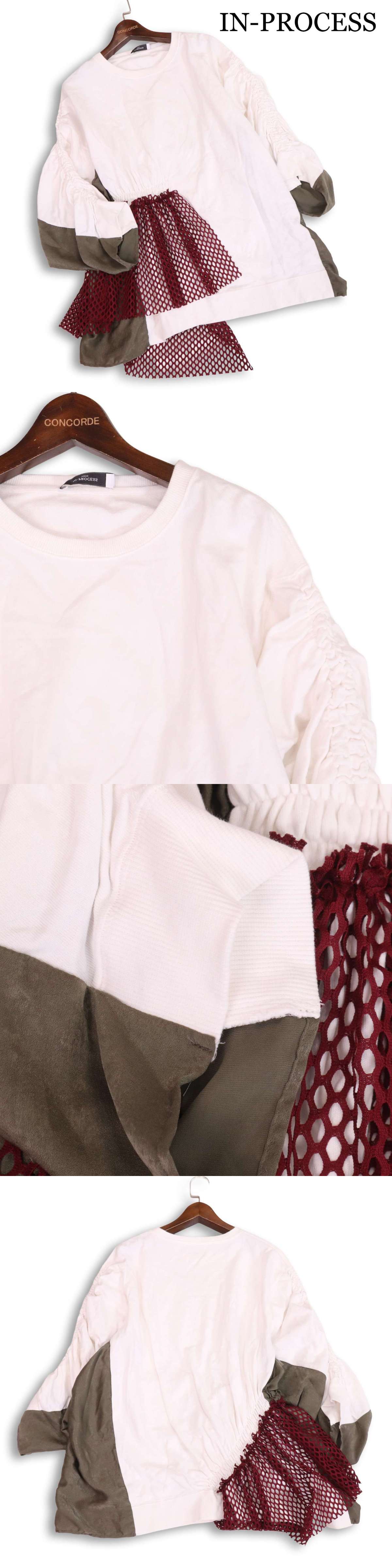 IN-PROCESS TOKYO インプロセス トーキョー メッシュ切替 長袖 シャーリング アシンメトリー カットソー Sz.F レディース 收藏