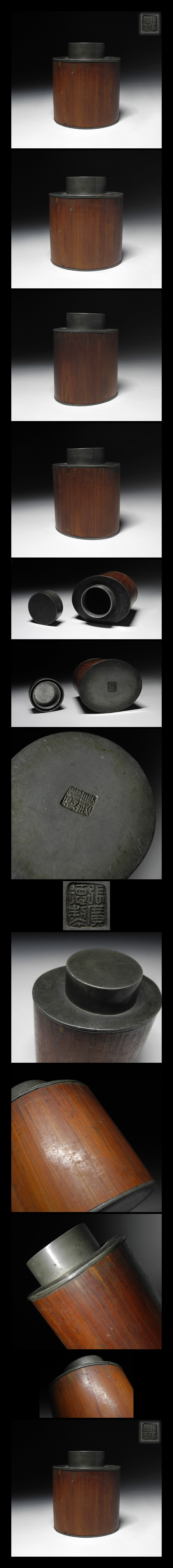 緑屋i■ 中国古玩 古錫 古竹貼 茶入 茶壺 茶心壺 張廣徳製 唐物 時代物 i9/0220-1/29-6#60 收藏