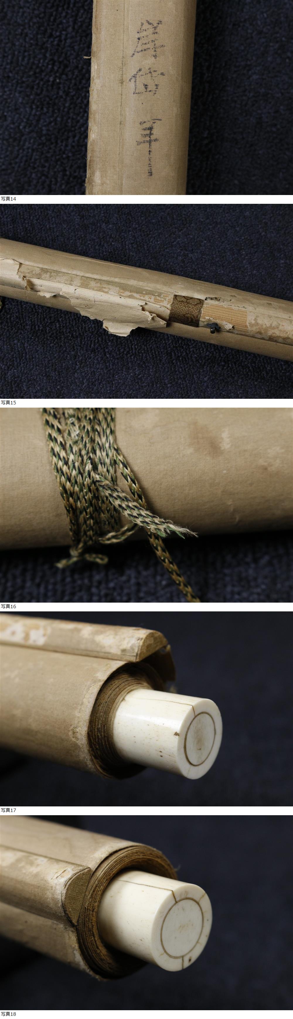 26021734* * * 商品詳細 * * * ここでしか出逢うことのできない唯一の美をご紹介させて頂きます。 作家略歴 虎の絵で有名な岸駒の実子で、別号を卓堂、虎岱など。 父に学び岸派の二代となる。 文化6年(1809)父に従い金沢城内で、天保15年(1844)金刀比羅宮で、 安政年間には御所のそれぞれ障壁画制作に参加。 京都に住み他派の画風を融合しながら花鳥、人物、山水ともに秀逸な作品を残すが、 とくに父と同じく虎の画を得意とした。 ■サイズ/軸:横53cm×縦184cm 画寸:横36.5㎝×縦102㎝ ■状態/スレ、キズ、ヤケ、シミ、折れ、破れ、軸先に割れ、欠け、直し、 紐にちぎれ、経年による傷みがございます。 ※写真にてご確認、ご了承の上ご入札ください。 * * * 支払詳細 * * * !かんたん決済 * * * 発送詳細 * * * 入金確認後3営業日以内に発送致します。 ※直接引き取りも可能です。 60~160サイズにつきましては 佐川急便、ゆうパックのどちらかで発送いたします。 ゆうパック発送の場合、弊社の発送日から追跡サービスに問合せ番号が反映されるまで 約1日ほどお時間がかかりますのでご了承下さい。 * * * 注意事項 * * * 運送中の破損があった場合は速やかに当社までご連絡下さい。 保険を利用するのに受取連絡後に運送会社による現場での破損状況確認が必要となります。 勝手に返送されますと保険の適用外となりますのでご注意ください。 * * * * * * 【真作】本物であると断定できる作品 【模写】わずかでも真作ではないと疑いのある作品、及び作者不明の作品は全て模写と表記いたします。 また、所定の鑑定機関の無い作品、弊社で判断出来ない場合も含まれます。 お問い合わせ:082-236-8669 |