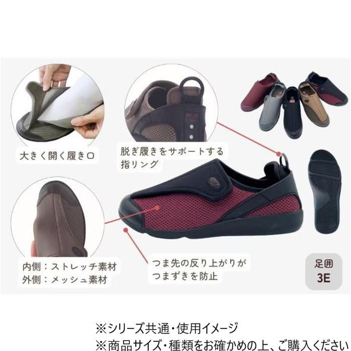 | 内側のびのびストレッチ、外側メッシュ素材の人気モデルです。大きく開く履き口で脱ぎ履きが楽になっております。面ファスナーで容易に着脱が可能です。ストレッチ素材で足あたりやわらか。インソールは取り外し可能。かかとの指リングが脱ぎ履きをサポートいたします。 |