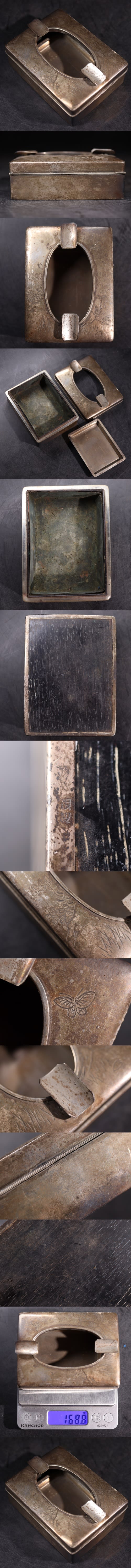 銀製 刻印 花蝶文 灰皿 重量約168.8g / 銀 彫金 金工 喫煙具 灰落とし アンティーク 煎茶飾 .G4151 收藏