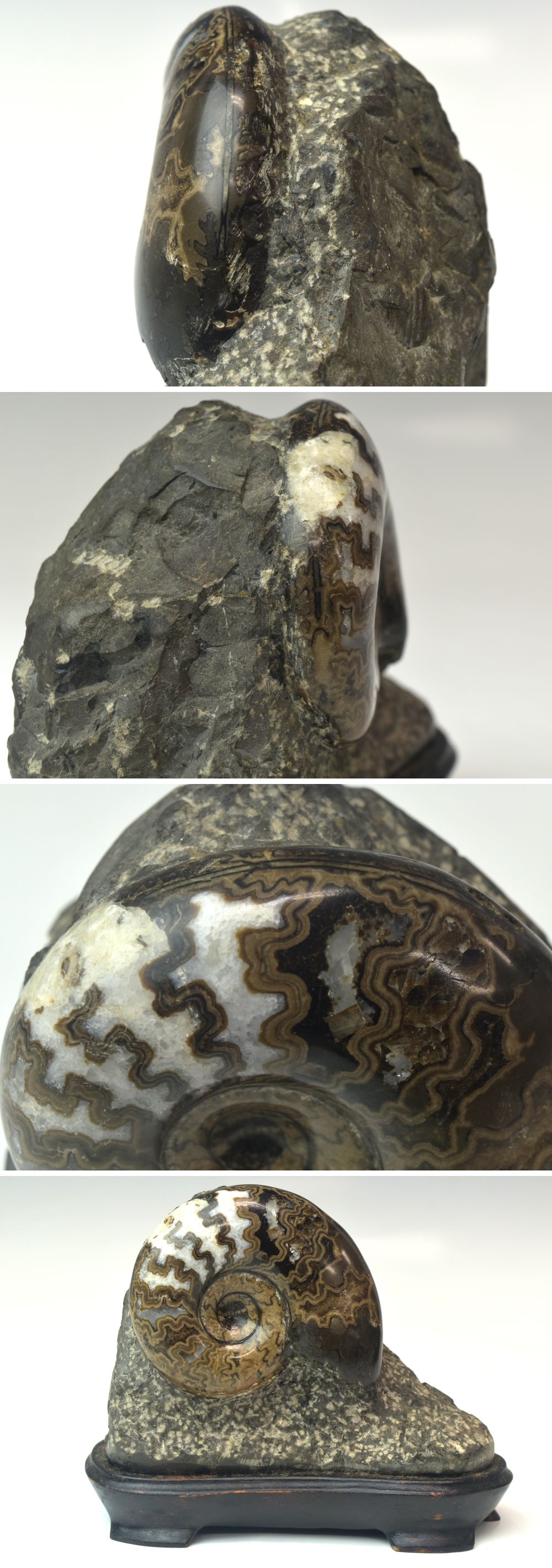 売切り 【アンモナイト 化石】幅13,5cm 重量1007g 鑑賞石 A2261【趣楽】 收藏