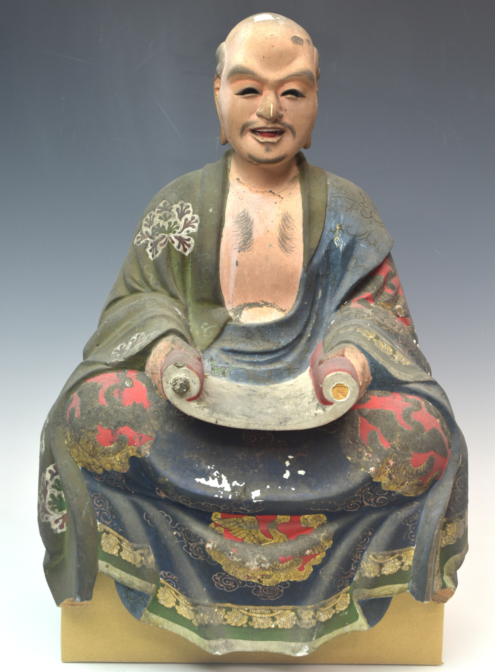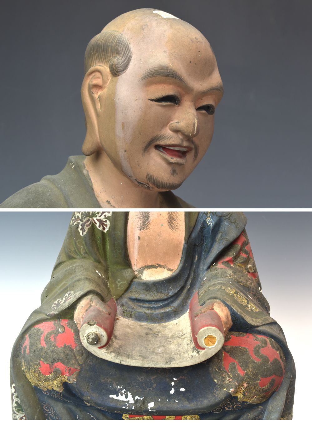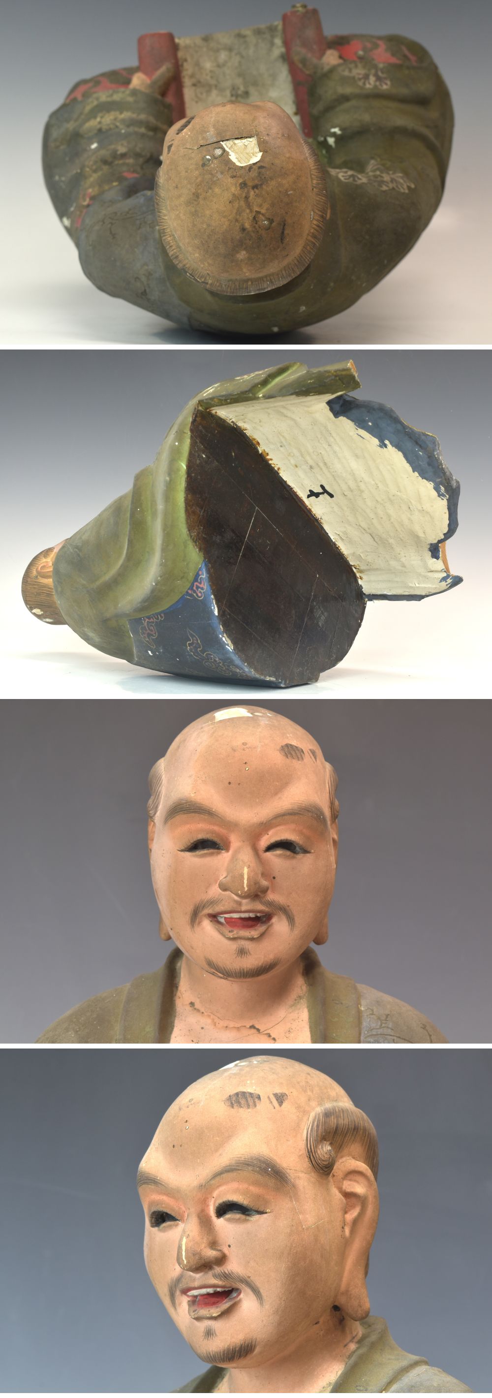 | 説明 | 時代のある木彫り彩色玉眼羅漢像です。 細部まで丁寧に彫刻、彩色が施されており時代を経た味わい深い羅漢像です。 良い表情をしており存在感があります。 経年に伴う擦り傷や汚れ、痛み等ありますので画像をご確認下さい。 今回、八体の羅漢像を同時出品しておりますので合わせて御覧下さい。(台は付属致しません) この機会をお見逃し無く! この他にも多数出品しておりますので宜しければご覧ください。 商品代金+消費税+送料の合計がお支払い代金となります。 |